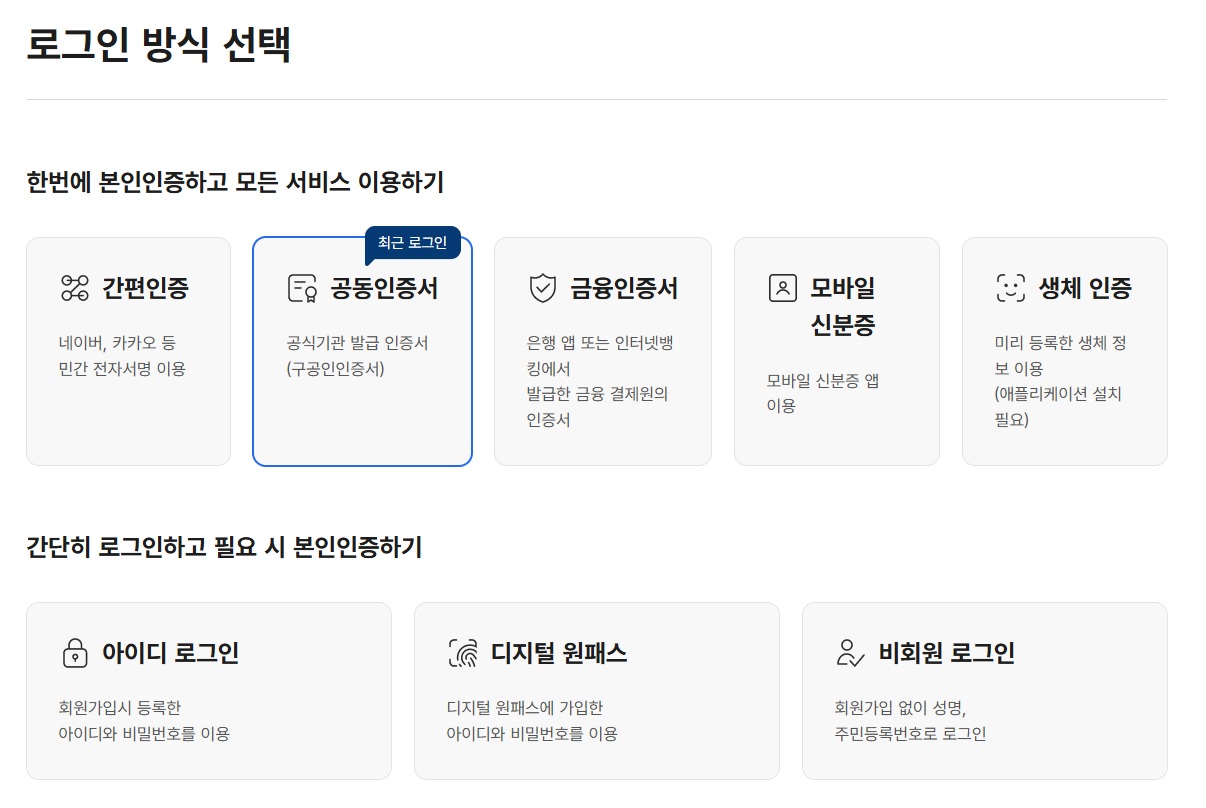 6. 내 경우에는 전에 회원가입 했던 적 있어서 공동인증서 로그인을 했다