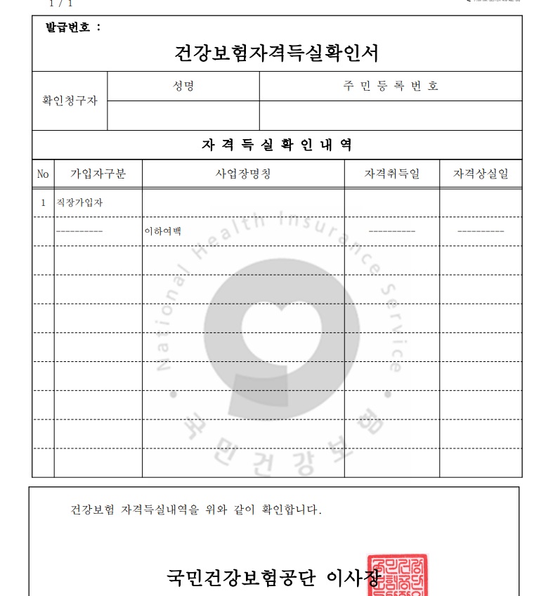 13. 아래와 같이 건강보험자격득실확인서 출력 완료!