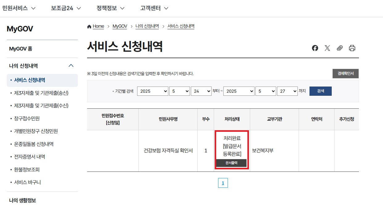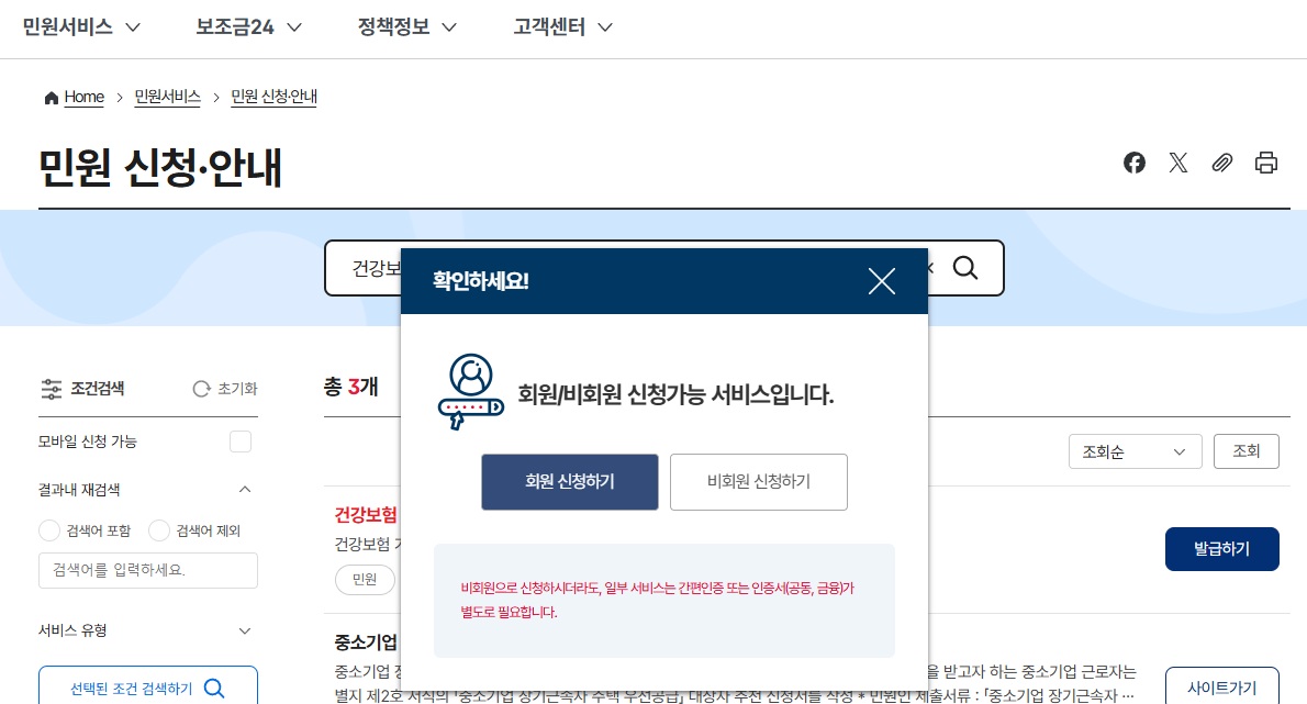 국민건강보험 사이트에서 가능하다고 해서 먼저 정부 24에서 시도해 보았다