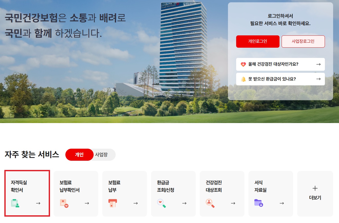 이건 아닌 거 같아서 국민건강보험 사이트로 다시 도전